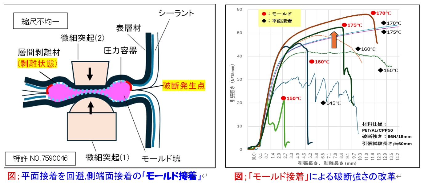 の発明によって、ヒートシール技法の欠落部を抜本補完が出来るようになりました。これでエッジ切れのない「密封」と「易開封」の同時達成法が確立でき、